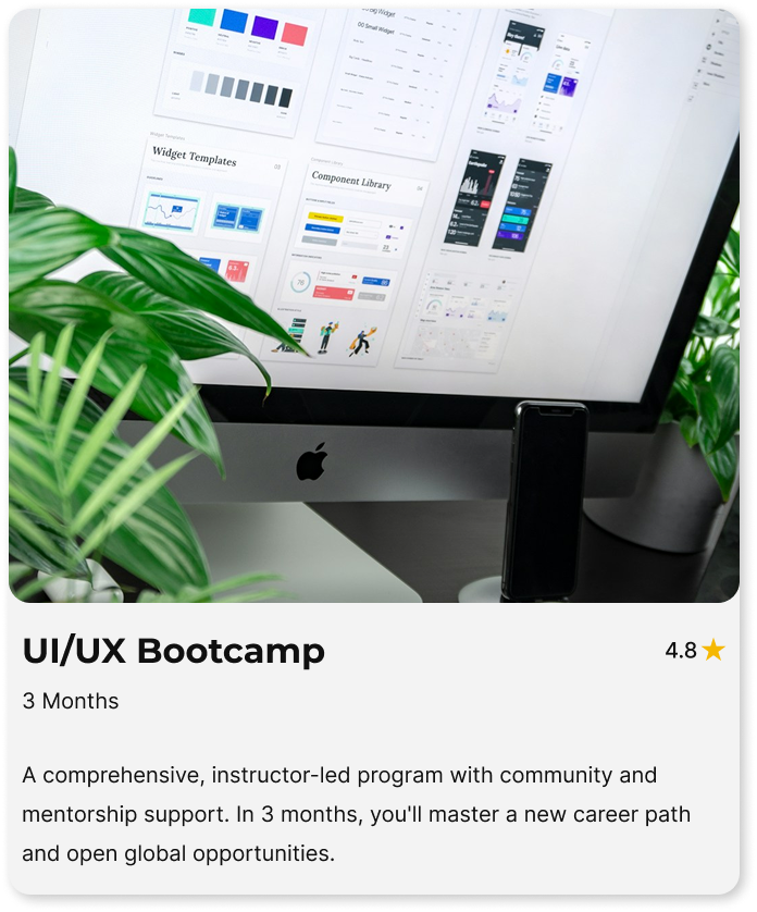 A comprehensive, instructor-led program with community and mentorship support. In 3 months, you’ll master a new career path and open global opportunities.